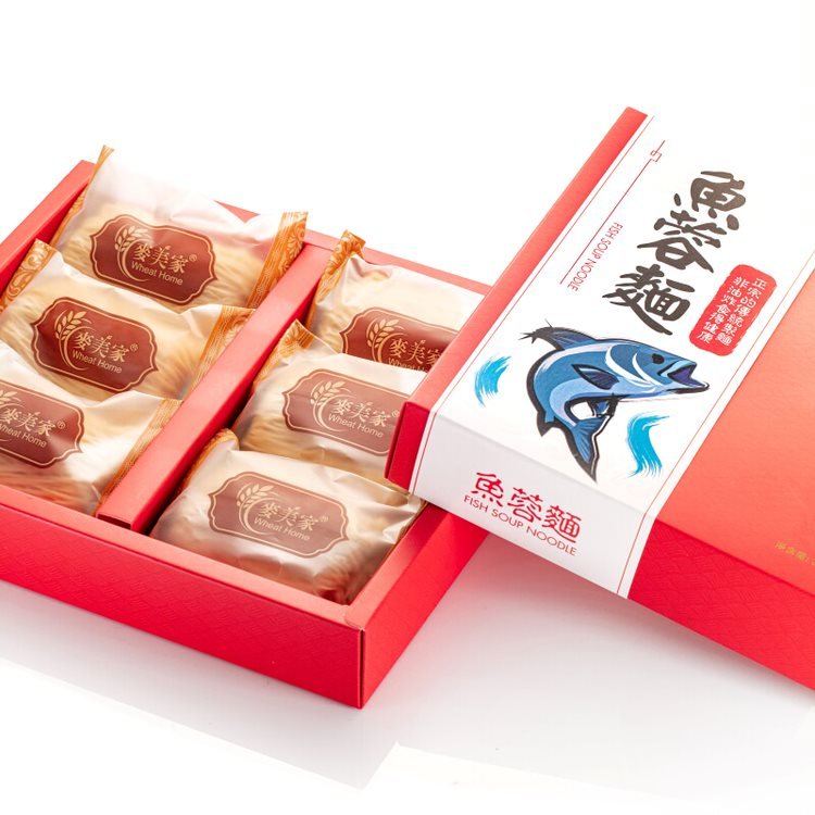 封裝:每個包裝紙板箱包含18盒禮盒裝魚蓉麵
